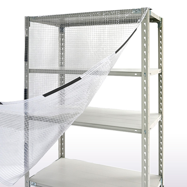 前面だけまたは背面だけを覆うビニールカバーです。上部と両サイドについているマグネットでラックに簡単に取付けが可能です。