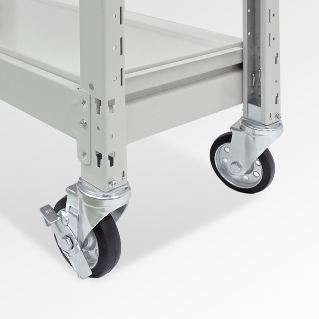 | 耐荷重 | 300kg/段(※均等静止耐荷重) ※キャスター耐荷重480kgからラック本体の自重を差し引いた数値が、全体耐荷重となります。 ※ラック本体の自重については同サイズのラックページをご参照ください。 |