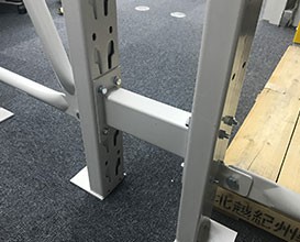 コンクリート製の床に対しアンカーボルトを打ち付けることで、パレットラックの支柱と地面を固定し安全性を確保します。標準施工いたします。